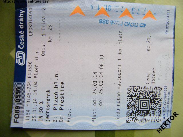 Jízdenka ČD z Plzně hl.n. - Přeštic dne 25.1.2014 *70