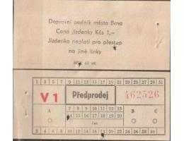 Jízdenka dopravní podnik města Brna, předprodej, bez přestupu 1968