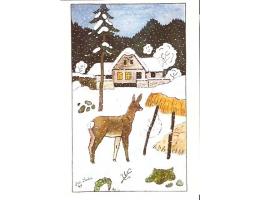 PROŠLÁ POŠTOU,ZACHOVALÁ,VČETNĚ ZNÁMKY,--na zadní straně uvedeno-RADOSTNÉ VÁNOCE A ŠŤASTNÝ NOVÝ ROK---