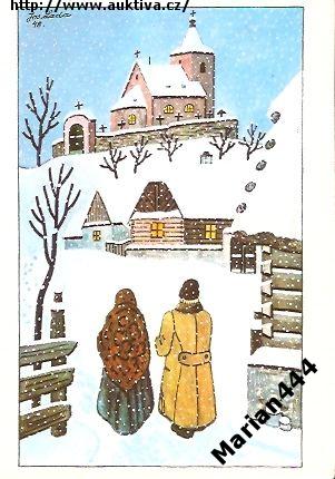 PROŠLÁ POŠTOU,ZACHOVALÁ,VČETNĚ ZNÁMKY,--na zadní straně uvedeno-RADOSTNÉ VÁNOCE A ŠŤASTNÝ NOVÝ ROK---