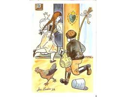 PROŠLÁ POŠTOU,ZACHOVALÁ,VČETNĚ ZNÁMKY,na zadní straně uvedeno"VESELÉ VELIKONOCE A BOHATOU POMLÁZKU PŘEJE"
