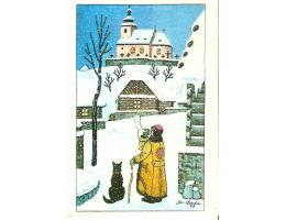 PROŠLÁ POŠTOU,ZACHOVALÁ,na zadní straně uvedeno"RADOSTNÉ VÁNOCE A ŠŤASTNÝ NOVÝ ROK",