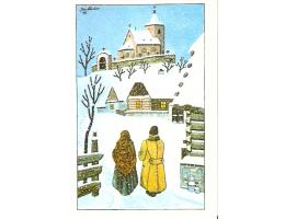 PROŠLÁ POŠTOU,ZACHOVALÁ,na zadní straně je uvedeno"RADOSTNÉ VÁNOCE A ŠŤASTNÝ NOVÝ ROK""