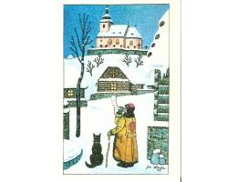 PROŠLÁ POŠTOU,ZACHOVALÁ,na zadní straně uvedeno "RADOSTNÉ VÁNOCE A ŠŤASTNÝ NOVÝ ROK"