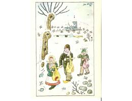PROŠLÁ POŠTOU,ZACHOVALÁ,na zadní straně uvedeno"RADOSTNÉ VÁNOCE A ŠŤASTNÝ NOVÝ ROK".