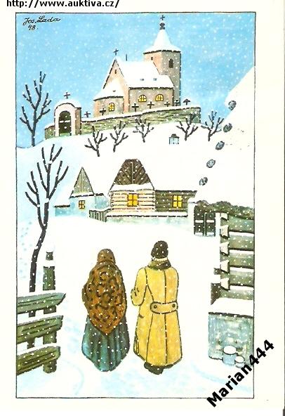 PROŠLÁ POŠTOU,ZACHOVALÁ,na zadní straně uvedeno"RADOSTNÉ VÁNOCE A ŠŤASTNÝ NOVÝ ROK",