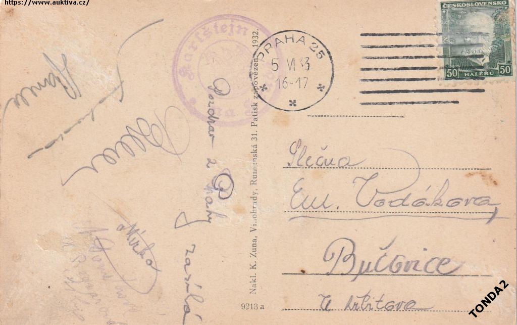 KARLŠTEJN HRAD NAKL. K. ZUNA °H896