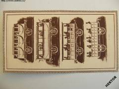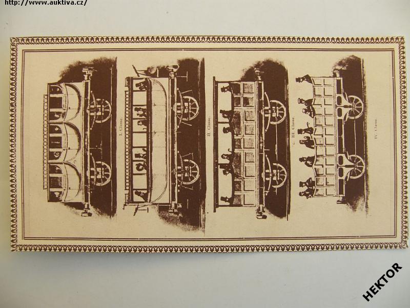 Karta se 4 kočárovými osobními vozy ke knize "Příspěvek k 150. výročí železnice v Břeclavi", vytiskla ČSD správa Střední dráhy v Olomouci v roce 1989. Nová nepoužívaná. Cena je za 1 kus.