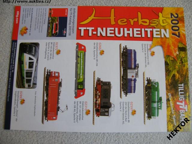 Velký barevný katalogový dodatek HERBSTNEUHEITEN 2007 – firmy „TILLIG TT Bahn“ ve velikosti TT z roku 2007. Nový nepoužívaný. Cena je za 1 kus.