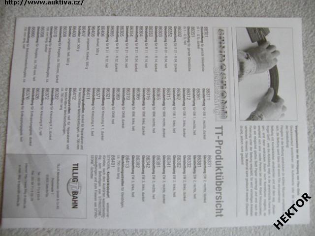Katalogový černobílý oboustranný list s nabídkou na kolejové podloží STYROSTONE a návod k použití – firmy „Tillig TT Bahn“ z roku 2001 – 1 list. Nový nepoužívaný. Cena je za 1 kus.