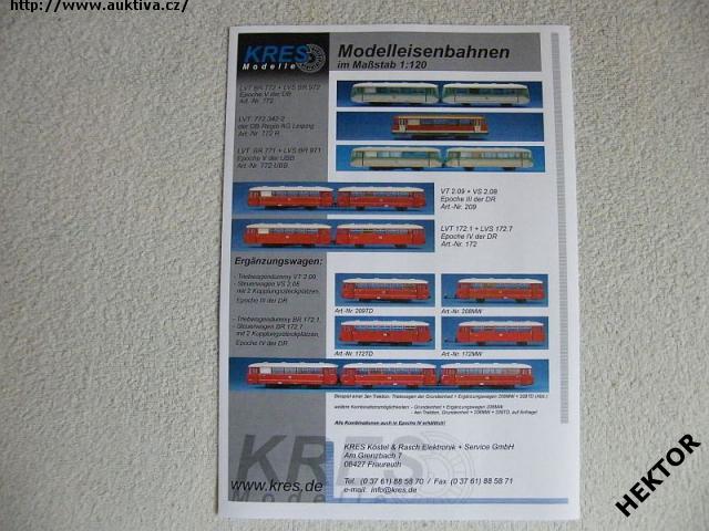 Velký barevný katalogový jednostranný list 2010 – firmy „Kres“ na motorové soupravy a vleky LVT + LVS + BR 172 epocha III – V – ve velikosti TT z roku 2010. Nový nepoužívaný. Cena je za 1 kus.