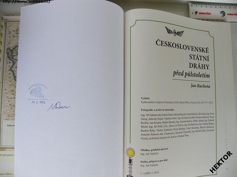 Kniha "Československé státní dráhy před půlstoletím", vydaná v roce 2012 a dne 17. 6. 2012 podepsaná autorem Janem Rachotou. Nová nepoužitá. Cena je za 1 kus.