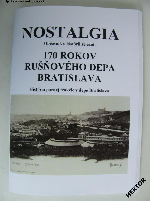 Kniha brožovaná šitá "NOSTALGIA – 170 rokov rušňového depa Bratislava" – Občasník o histórii železníc – História parnej trakcie v depe Bratislava, vydal Klub železničních modelárov Bratislava, v roce 2018, 1. Upravené vydanie. Nová, nepoužitá. Cena je za 1 kus.