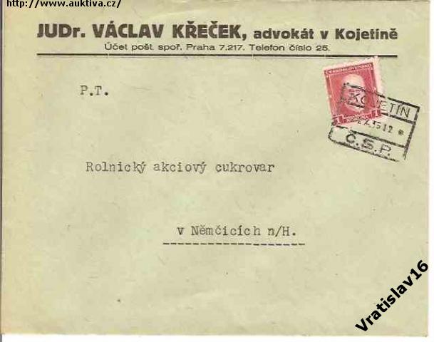 KOJETÍN /nádražní razítko/CUKROVAR/r1935 /*fa1
