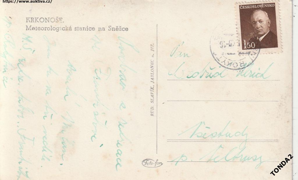 KRKONOŠE SNĚŽKA METEOROL. STANICE R. SLAVÍK. °HG380