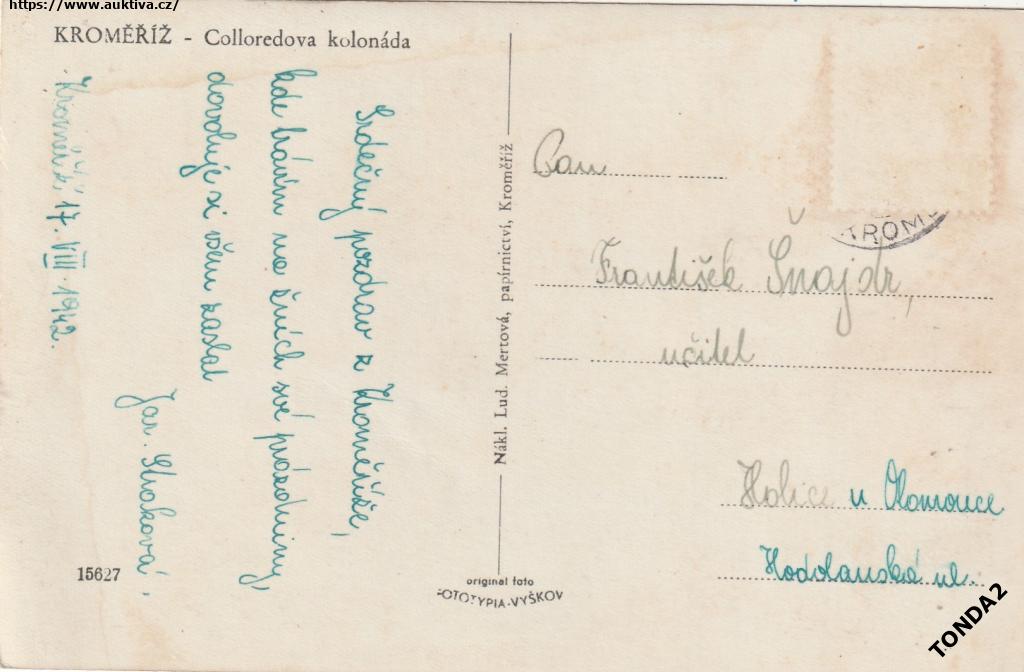 KROMĚŘÍŽ ZÁMEK COLLOREDOVA KOLONÁDA NAKL. MERTOVÁ. °HG364