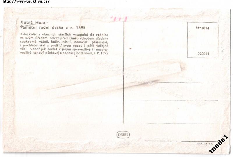 KUTNÁ HORA PAMĚTNÍ DESKA Z R.1595 ORBIS Kčs 2.50 ***53926G