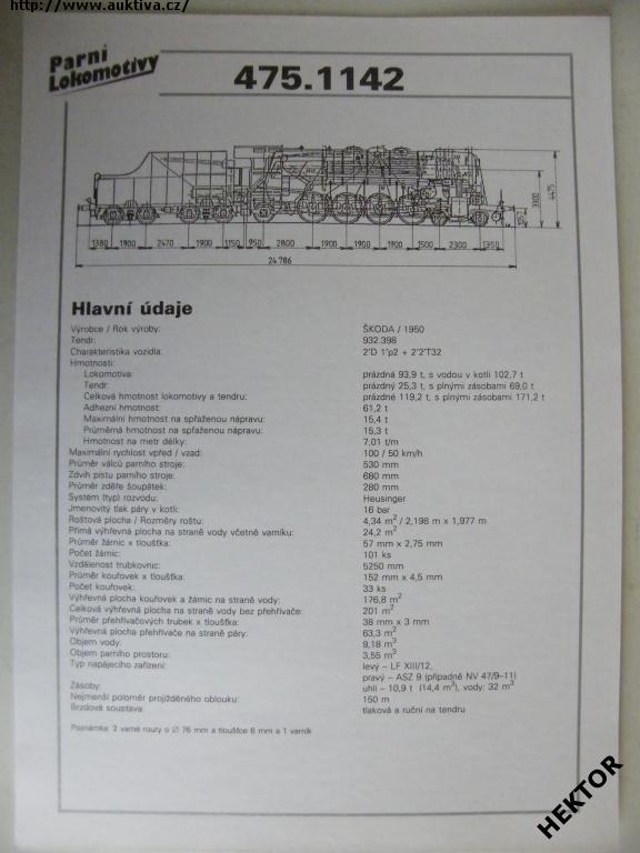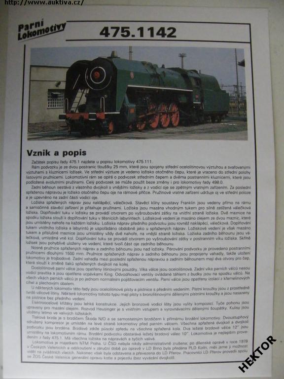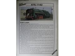 Technický list vzniku a popisu lokomotivy 475.1142 vč. náčrtu s kótami a hlavními technickými údaji, vydal NADATUR, v roce 1994. Prakticky nepoužívaný. Cena je za 1 kus.