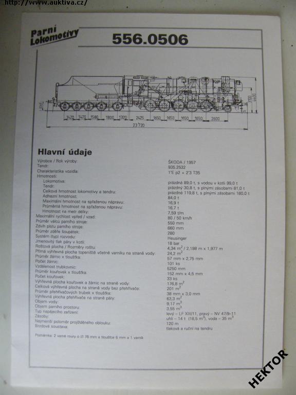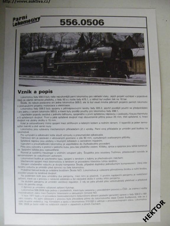 Technický list vzniku a popisu lokomotivy 556.0506 vč. náčrtu s kótami a hlavními technickými údaji, vydal NADATUR, v roce 1994. Prakticky nepoužívaný. Cena je za 1 kus.