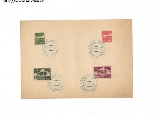 Let.známky s příležitostným raz.Moravská Ostrava 1 , 1 let Praha,Hradec Králové,Opava,Mor.Ostrava 1.7.1935 hledané razítko