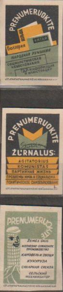 Litva SSSR 1967 Předplatné novin a časopisů, 3 zápalkové ná