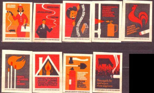 Litva SSSR Požární bezpečnost, 9 ks zápalkových nálepek sirk