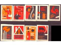 Litva (SSSR) 1965 Požární bezpečnost, 9 ks zápalkových nálepek sirkárna Startas Kaunas
