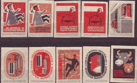 Litva (SSSR) Reklama na pojištění, zápalkové nálepky 10 ks, sirkárna Startas Kaunas cca 1965