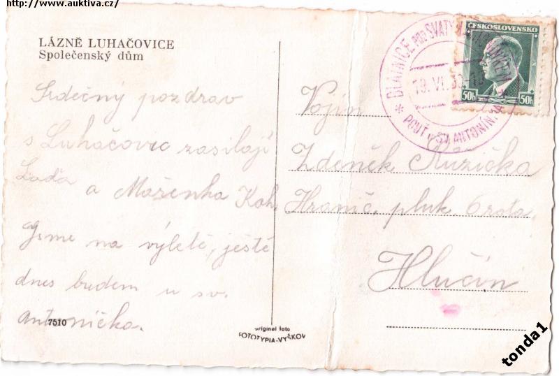 Luhačovice společenský dům r.1938 příl. razítko °52898
