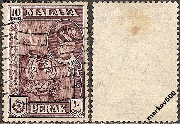 Od roku 1878 pretlače na známkach Prielivových osád vo forme hviezdy a polmesiaca a písmeno P, neskôr PERAK, tento názov sa objavuje aj na definitívnych známkach od roku 1891. V rokoch 1900-1935 platili známky Federovaných malajských štátov. Od roku 1935 obnovená emisná činnosť s názvom PERAK a nadtitulom MALAYA, neskôr MALAYSIA.