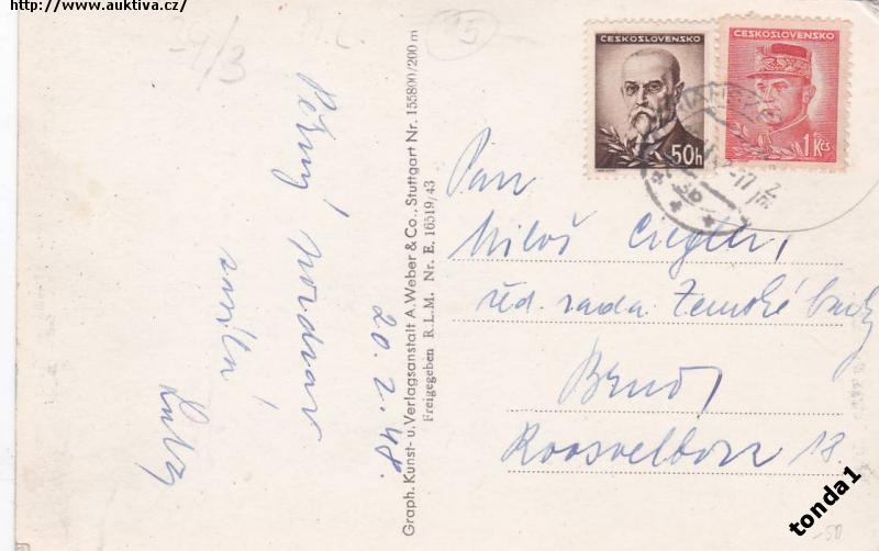 MARIÁNSKÉ LÁZNĚ POHLED OD KRAKONOŠE WEBER r. 1940 °54003G