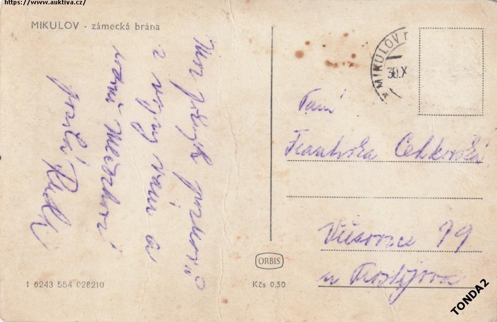 MIKULOV ZÁMECKÁ BRÁNA ORBIS Kčs 0.50 °HA590