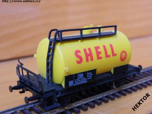Sběratelský model 2osé cisterny jako typ Zw 52, ÖBB, kotel stříkaný žlutou, logo a popisy tištěny bílou, na kotli tištěn červenou nápis SHELL a vpravo dole logo, nízké kovové zábradlí brzdové lávky, umělohmotný žebřík a horní lávka, spodek vozu černý zaklapávací, brzdová soustava součástí spodku vozu. Výrobcem BTTB koncem 80. let, kat. č. 14414. Výměnná spřáhla a kovová dvojkolí. Po zakoupení byl model odložen do vitríny a neježděn, je dlouho neježděn. Bez originální krabičky.