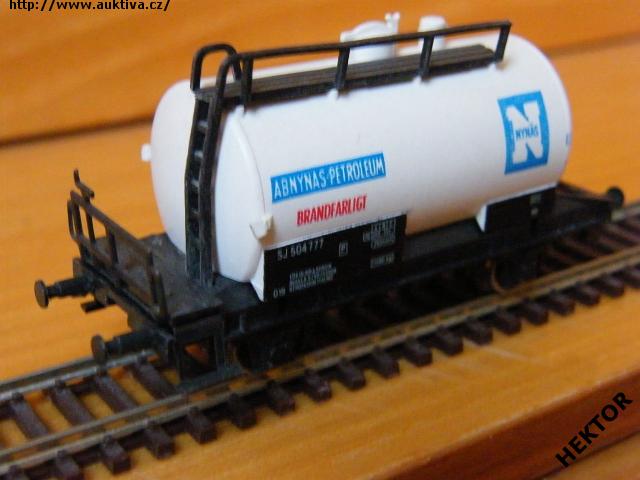 Sběratelský model 2osé cisterny typu jako Zw 52, SJ, kotel stříkaný bílou, logo a popisy tištěny bílou, na kotli vlevo modrý obdélníček s nápisem a pod ním nápis tištěný červenou a vpravo modrý obdélníček s logem NYNÄS, nízké kovové zábradlí brzdové lávky, umělohmotný žebřík a horní lávka, spodek vozu černý zaklapávací, brzdová soustava součástí spodku vozu. Výrobcem BTTB koncem 80. let, kat. č. 14419. Výměnná spřáhla a kovová dvojkolí. Po zakoupení byl model odložen do vitríny a neježděn, je dlouho neježděn. Bez originální krabičky.