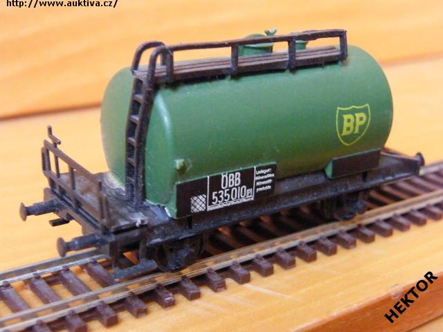 Sběratelský model 2osé cisterny typu jako Zw 52, ÖBB, kotel stříkaný tmavou zelenou, logo a popisy tištěny bílou, na kotli vpravo tištěno žlutou logo BP, nízké kovové zábradlí brzdové lávky, umělohmotný žebřík a horní lávka, spodek vozu černý zaklapávací, brzdová soustava součástí spodku vozu. Výrobcem BTTB v 80. letech, kat. č. 4416. Výměnná spřáhla a umělohmotná dvojkolí. Po zakoupení byl model odložen do vitríny a pouze občas ježděn, je dlouho neježděn. Bez originální krabičky.