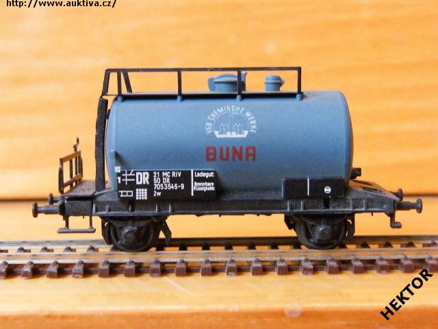 Sběratelský model 2osé cisterny typu Zw 52, DR, kotel stříkaný modrou, logo a popisy tištěny bílou, na kotli uprostřed nahoře tištěno bílou logo a pod ním červenou nápis BUNA, nízké kovové zábradlí brzdové lávky, kovový žebřík a horní lávka, spodek vozu černý příhradový lepený, brzdová soustava vkládaná černá. Výrobcem Zeuke nebo BTTB v 70. letech, kat. č. 4418. Výměnná spřáhla a umělohmotná dvojkolí. Po zakoupení byl model občas ježděn, je dlouho neježděn. V náhradní krabičce BTTB.