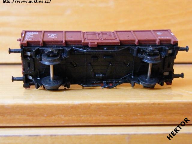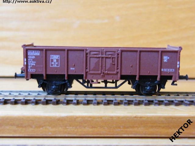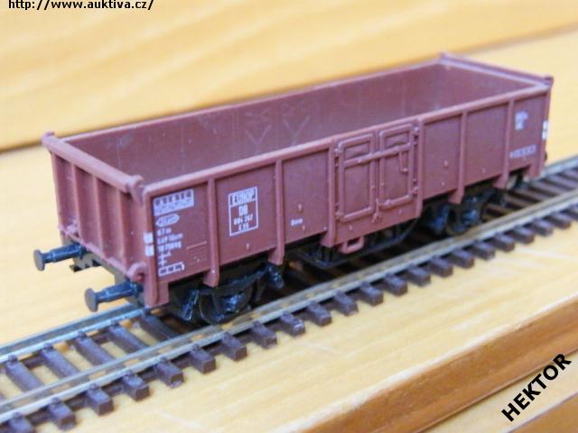 Sběratelský model 2osého otevřeného vozu typu Ommu 40, DB, prázdný, karosérie stříkaná hnědočervenou, podlaha plechová stříkaná šedou, logo DB a popisy tištěny bílou v rámečku na hnědočerveném podkladu, vlevo dole bez černého obdélníčku, přechodky lisované hnědočervené, spodek vozu černý zajištěný plechovou podlahou, brzdová soustava součástí spodku vozu. Výrobcem Zeuke TT Bahn nebo Tillig v 90. letech, kat. č. 14247. Výměnná spřáhla a kovová dvojkolí černěná. Po zakoupení byl model odložen do vitríny a neježděn, je dlouho neježděn. Bez originální krabičky.. Výztuha pod dveřmi na jedné straně rozlomena – poskytnuta sleva 50 Kč.