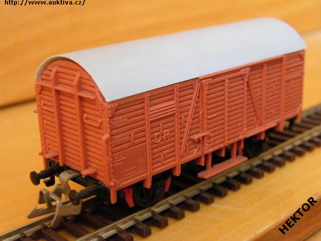 RARITA!!! JEDEN Z NEJSTARŠÍCH MODELŮ!!! Sběratelský model 2osého zavřeného vozu bez brzdařské budky typu G, DR, karosérie dřevěná stříkaná červenohnědou, madla posunovače červenohnědá s otvory, stupačka pod dveřmi červenohnědá, kulatá střecha jako samostatný výlisek barvený ve hmotě šedou hladká, logo DR lisované červenohnědé neobtažené, číslo vozu 18 - 01 - 57 lisované červenohnědé neobtažené, popisy lisované červenohnědé neobtažené, vlevo dole není černý obdélníček, přechodky lisované červenohnědé, popisy na boku spodku vozu lisované černé, spodek vozu příhradový černý lepený, brzdová soustava vkládaná červená. Výrobcem Zeuke koncem 50. let, kat. č. 159/59. Průběžné spřáhlo Zeuke stříbrné a umělohmotná dvojkolí. Po zakoupení byl model občas ježděn, je dlouho neježděn. Bez originální krabičky.