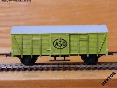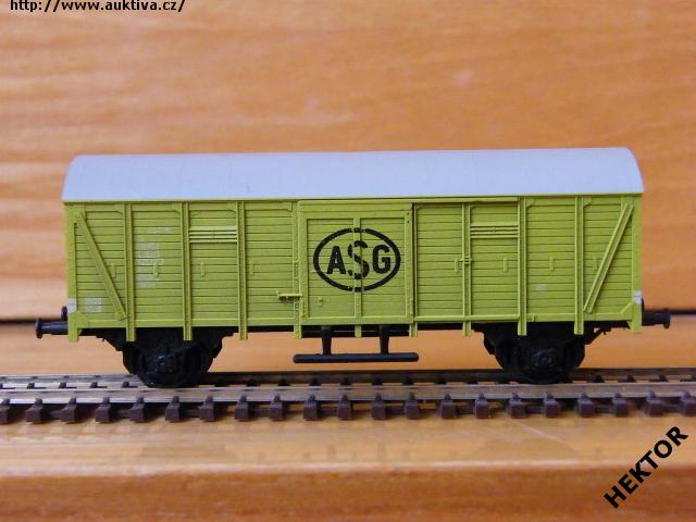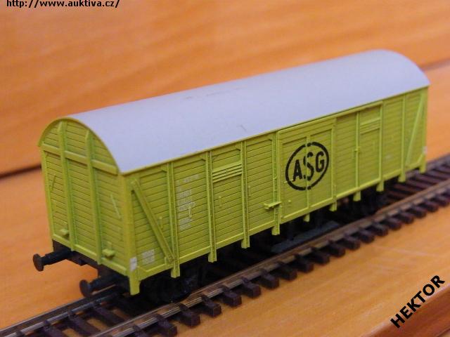RARITA!!! Sběratelský model 2osého zavřeného vozu typu Gl, SJ, karosérie stříkaná zelenožlutou, kulatá střecha napříč pertlovaná stříkaná šedou, !!!NA OBOU BOCÍCH JIŽ JSOU DVEŘE SE SPRÁVNÝM OTEVÍRÁNÍM!!!, schůdek pod dveřmi ČERNÝ, logo SJ tištěno bílou na zelenožlutém podkladu, číslo vozu 45 216 tištěno bílou na zelenožlutém podkladu, popisy tištěny bílou na zelenožlutém podkladu, na dveřích tištěn černou ovál s černým nápisem "ASG" na zelenožlutém podkladu, vlevo dole není černý obdélníček, přechodky tištěny bílou na zelenožlutém podkladu, spodek vozu černý na západky, brzdová soustava součástí spodku vozu. Výrobcem BTTB od roku 1984 OD 2. VÝROBNÍ SÉRIE, kat. č. 04161. Výměnná spřáhla a umělohmotná dvojkolí. Po zakoupení byl model odložen do vitríny a neježděn, je dlouho neježděn. Bez originální krabičky.