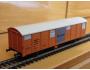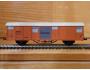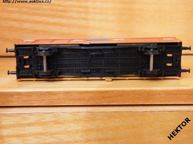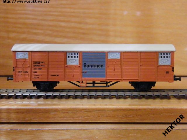RARITA!!! Sběratelský model 2osého zavřeného vozu typu Grs 212 (Glmms 14; Gbs), DB, "BANANEN", karosérie stříkaná tmavou oranžovou, dveře stříkané tmavou šedou, plochá střecha hladká stříkaná světlou krémovou, logo DB tištěno černou na tmavém oranžovém podkladu, číslo vozu 01 80 132 6 514 - 7 tištěno černou na tmavém oranžovém podkladu, popisy tištěny černou na tmavém oranžovém podkladu, na dveřích tištěn černou vodorovný nápis "Bananen" na tmavém šedém podkladu, vlevo dole není černý obdélníček, přechodky lisované tmavé oranžové, ventilace na boku šedé, spodek vozu černý na západky se vzpěrami rámu a 3 svislými výztuhami, brzdová soustava součástí spodku vozu. Výrobcem BTTB v 80. letech, kat. č. 04151. Výměnná spřáhla a umělohmotná dvojkolí. Po zakoupení byl model odložen do vitríny a neježděn, je dlouho neježděn. Bez originální krabičky.