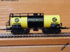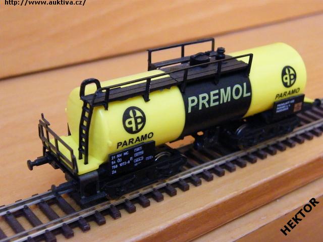 RARITA!!! LIMITOVANÁ SÉRIE!!! Sběratelský model 4osé cisterny typu Za, ČD, kotel barvený ve hmotě žlutou a uprostřed stříkaný široký černý pruh, logo a popisy tištěny bílou na černém podkladu, na kotli na obou koncích tištěno černou logo PARAMO a uprostřed tištěn žlutou nápis PREMOL, nízké kovové zábradlí brzdové lávky, umělohmotný žebřík a obě horní lávky, 2osé černé podvozky typu III. Výrobcem Tillig v roce 2003 pro Modellbahnshop Sebnitz, kat. č. 15408. Výměnná spřáhla a kovová dvojkolí černěná. Po zakoupení byl model odložen do vitríny a neježděn, je dlouho neježděn. Bez originální krabičky.