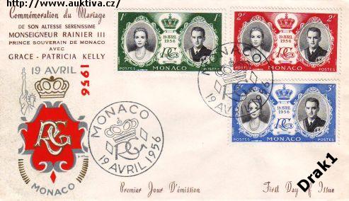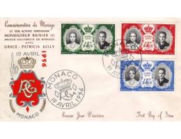 Monako 1956 Svatba kníže Rainier III a americká herečka Grace Kelly, Michel č.561-3 FDC