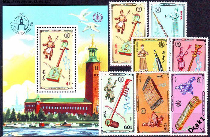 Mongolsko 1986 Hudební nástroje, Michel č.1798-804+Bl.115 **