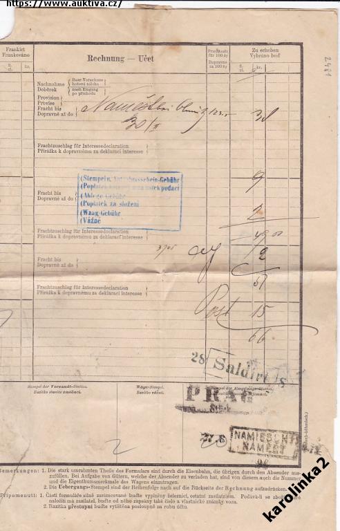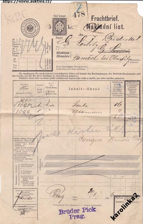 NÁKLADNÍ LIST=NÁMĚŠT=OLOMOUC=PRAHA=rok1896*P2481