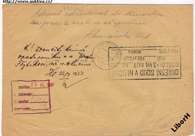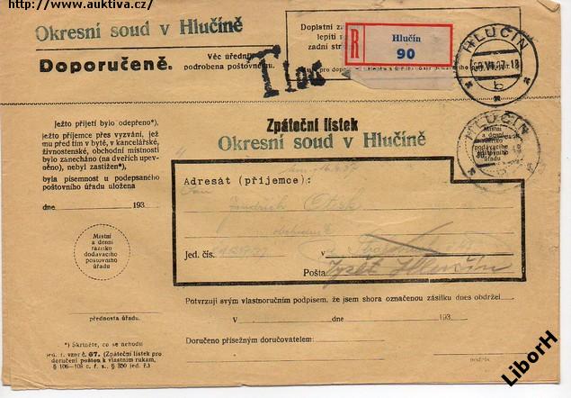 návratka ze soudu doporučeně raz Hlučín a Chuchelná, O7/422