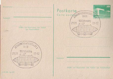 NDR 1987 Johanngeorgenstadt 1 150. Gebudrstag G.Baumgartner, vzducholoď, příležitostné razítko na CDV