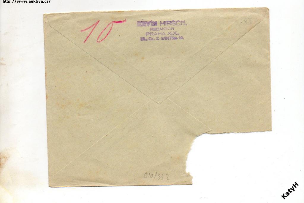 obálka - vada odesílatel Hirsch raz.Praha r.1938 O10/552