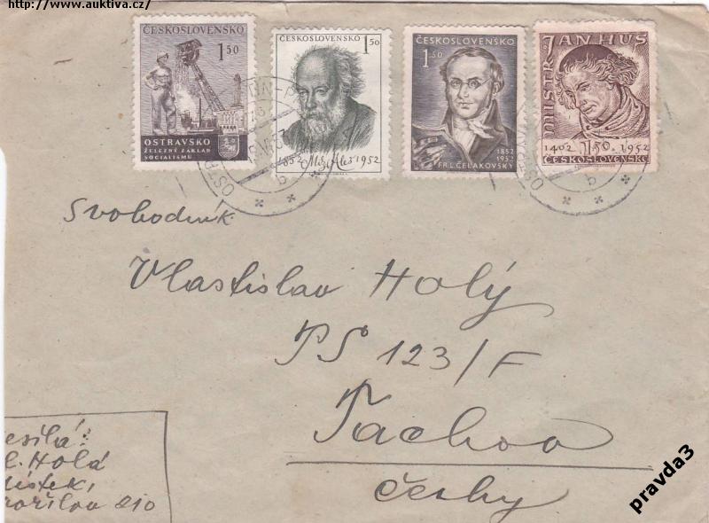 OBÁLKA MĚNOVÁ REFORMA 1953 VLAKOVÁ POŠTA č.76 OSTRAVA-BOHUMÍN-PRAHA 15.6.1953 OMR/10