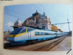 Obdélníková magnetická placka – větší rozměru 100 x 63 mm - elektrická jednotka PENDOLINO na plzeňském nádraží. Nová nepoužitá, foceno přes sáček. Cena je za 1 kus.