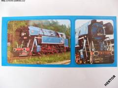 Český barevný obrázek velikosti 240 x 120 mm - parní lokomotivy řady 477.043 ČSD s přezdívkou PAPOUŠEK a další detail. Nová nepoužitá. Cena je za 1 kus.